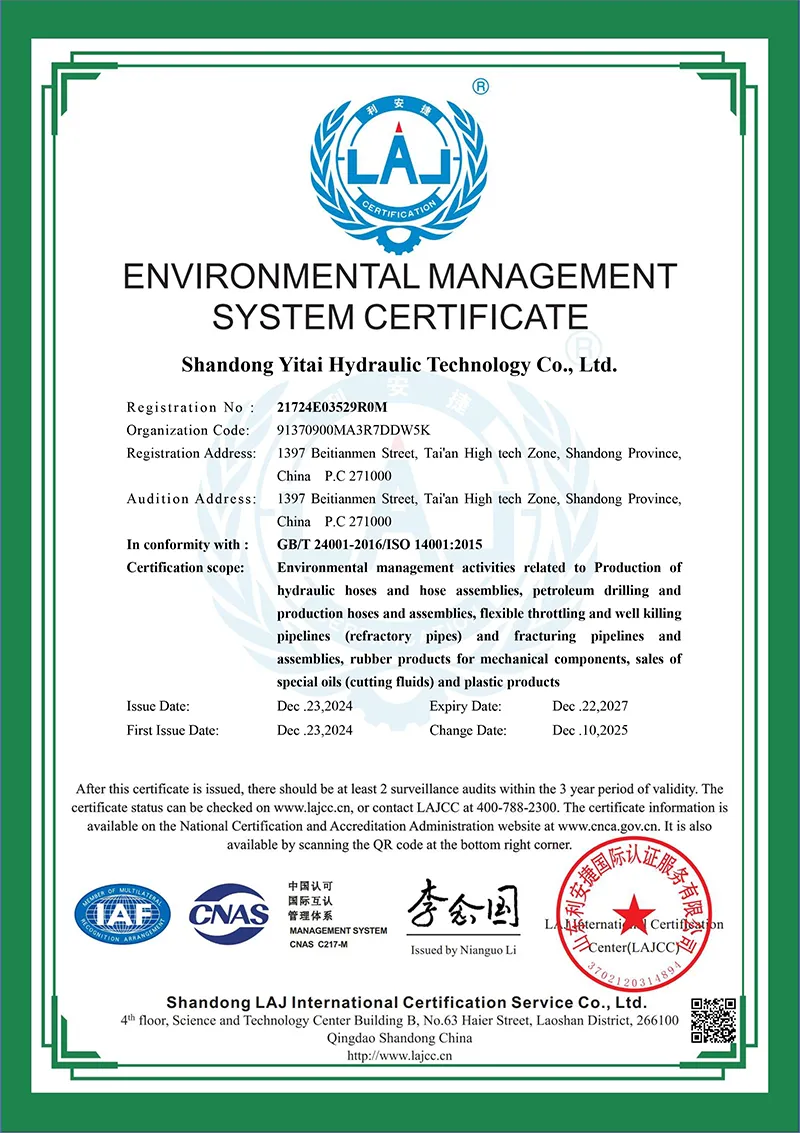 Environmental Management System -sertifiointi (standardin GB/T24001-2016 ISO14001: 2015 mukainen)