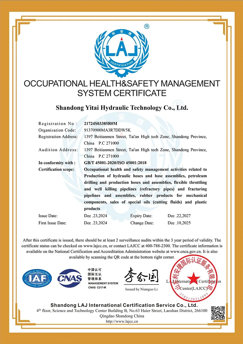 Työterveyden ja -turvallisuuden hallintajärjestelmän sertifiointi (standardin GB/T45001-2020 ISO45001: 2018 mukainen)