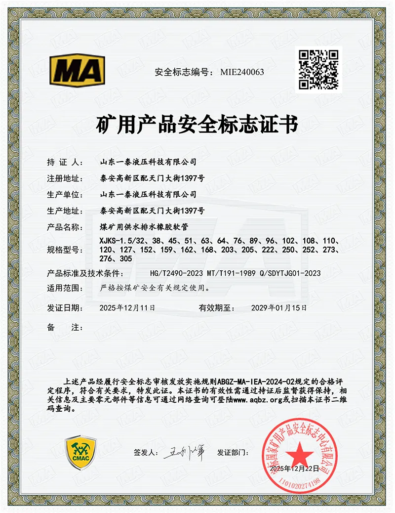 MA Coal Safety Mining Product Safety Mark Certificate.
