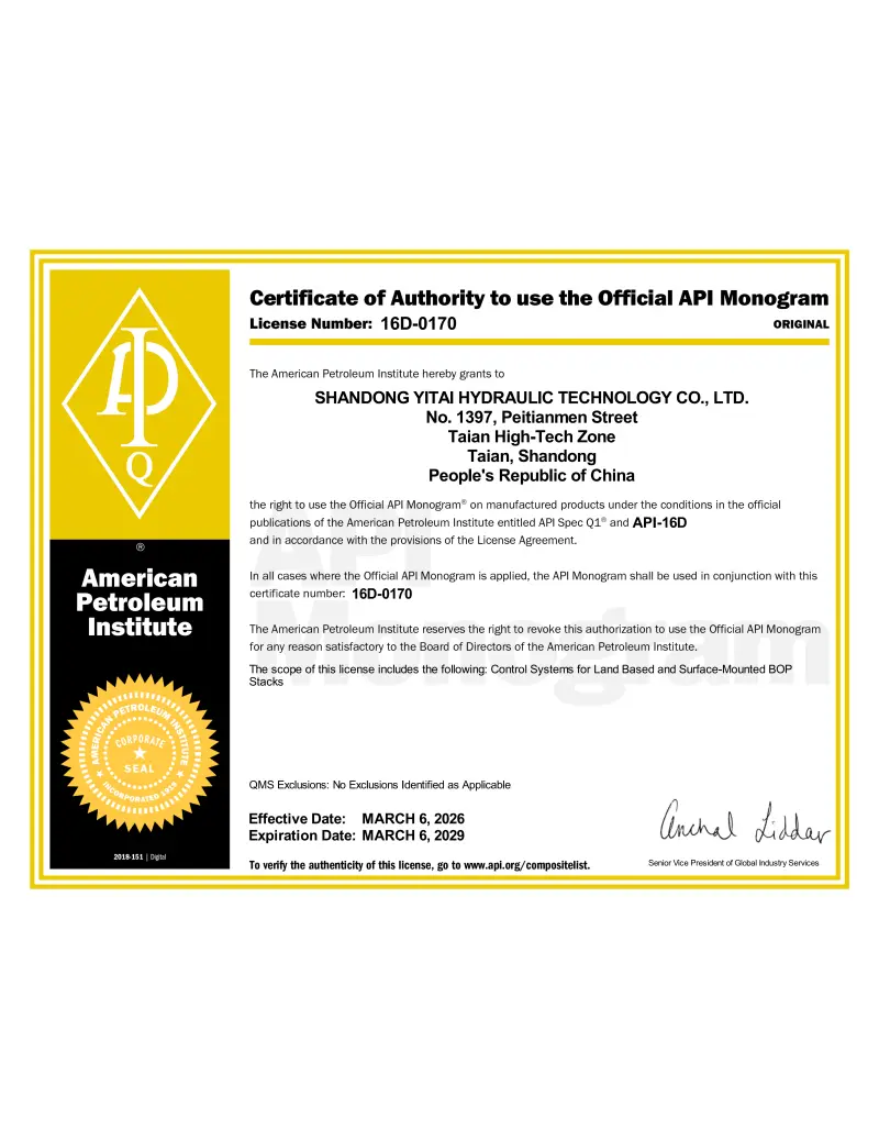 API SPEC 16C -sertifikaatti
